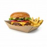- Bandeja fabricada en papel antigrasa apta para productos con salsa, aceite, etc.