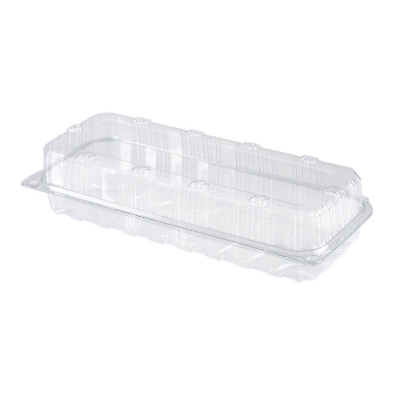 - Envase de plástico con bisagra muy utilizado por restaurantes, casas de comida para llevar y en general cualquier negocio que sirva tortillas, tartas y empanadas para llevar o productos similares.