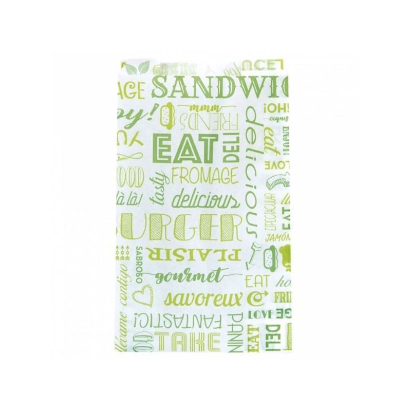 - Bolsa fabricada en papel antigrasa apta para productos con salsa, aceite, etc.