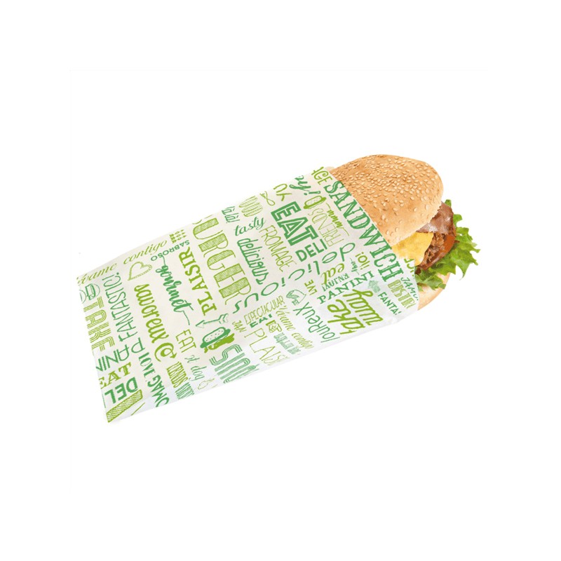 - Bolsas perfectas para hamburguesas realizadas en papel antigrasas de 32 g/m2.