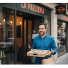 - Esta caja de cartón para cubrir paellas es utilizada normalmente por restaurantes, servicios de catering y take away, pizzerías... En general, esta caja para meter paelleras es usada por todos los comercios que ofrecen paellas a domicilio.