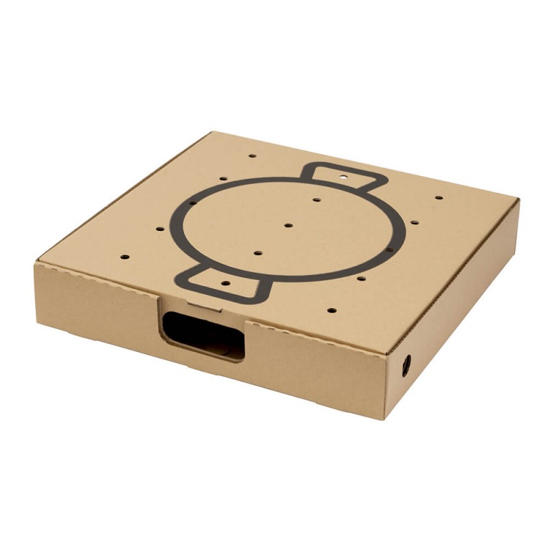 - Caja de cartón auto montable. Nuestras cajas para paelleras vienen premontadas.