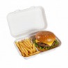 - Envase de dos compartimentos fabricado en caña de azúcar perfecto para combinar hamburguesa mas patatas fritas o cualquier otro entrante.