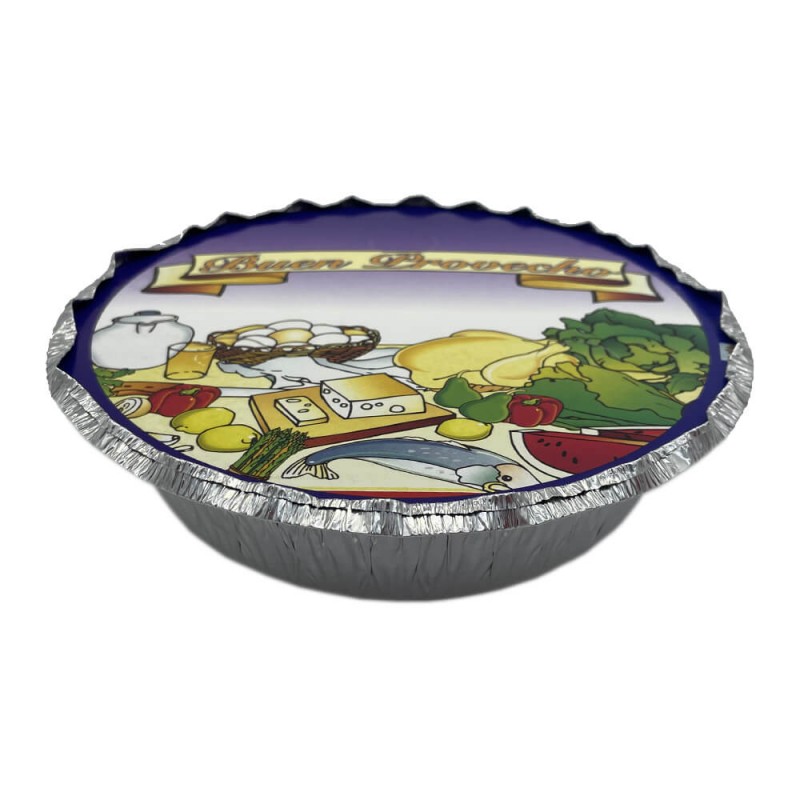 - Envase de aluminio desechable con tapa utilizado comúnmente para raciones de paella.