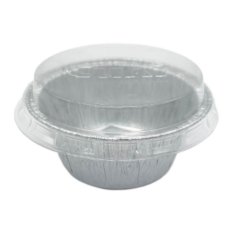 - Envase de aluminio con tapa perfecto para un postre pequeño.