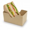 Gracias a su tamaño compacto (12 cm de largo x 7 cm de alto x 6,5 cm de ancho), es perfecta para sándwiches estándar, aportando una presentación cuidada y profesional. Además, el cartón kraft transmite una imagen ecológica y natural, muy valorada por los clientes.