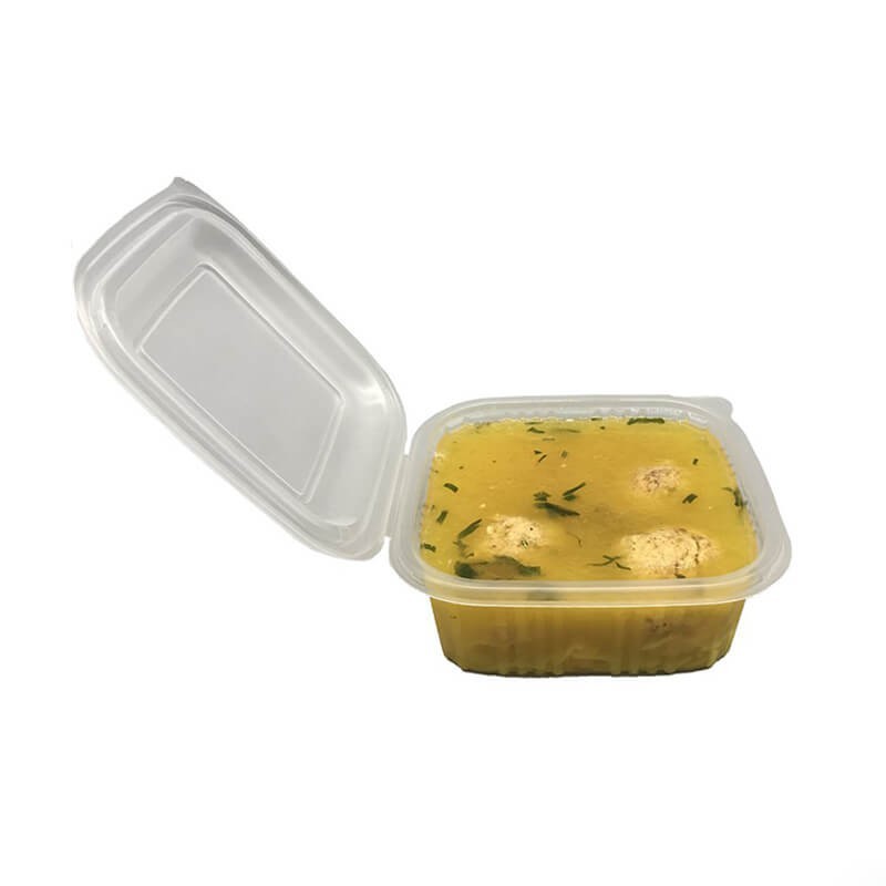 - Envase de plástico desechable apto para su uso en frío, caliente y microondas.