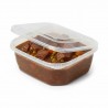 - Tarrina desechable apta para su uso en microondas y congelación. - Este producto, debido a su cierre estanco, admite productos que contengan salsas o líquidos. - El precio indicado es para 70 Uds.