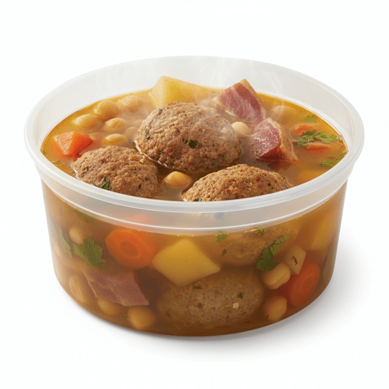 - Esta tarrina redonda, debido a su cierre estanco, admite productos que contengan salsas o líquidos.
