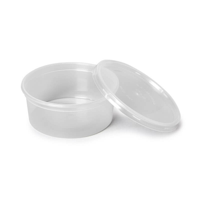 - Esta tarrina redonda, debido a su cierre estanco, admite productos que contengan salsas o líquidos.