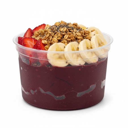 - Envase PET transparente (475 ml) para porciones grandes de açaí. Elegante, ligero y ecológico, ideal para llevar.