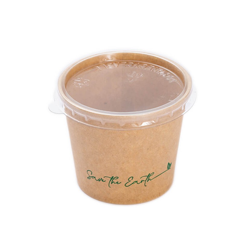 - Envase desechable fabricado en papel con tratamiento antigrasa apto para productos con salsa, aceite, etc.