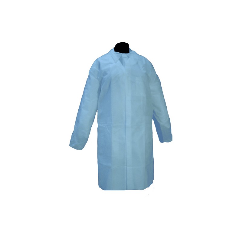 - Bata de visita desechable azul con cierre de velcro.