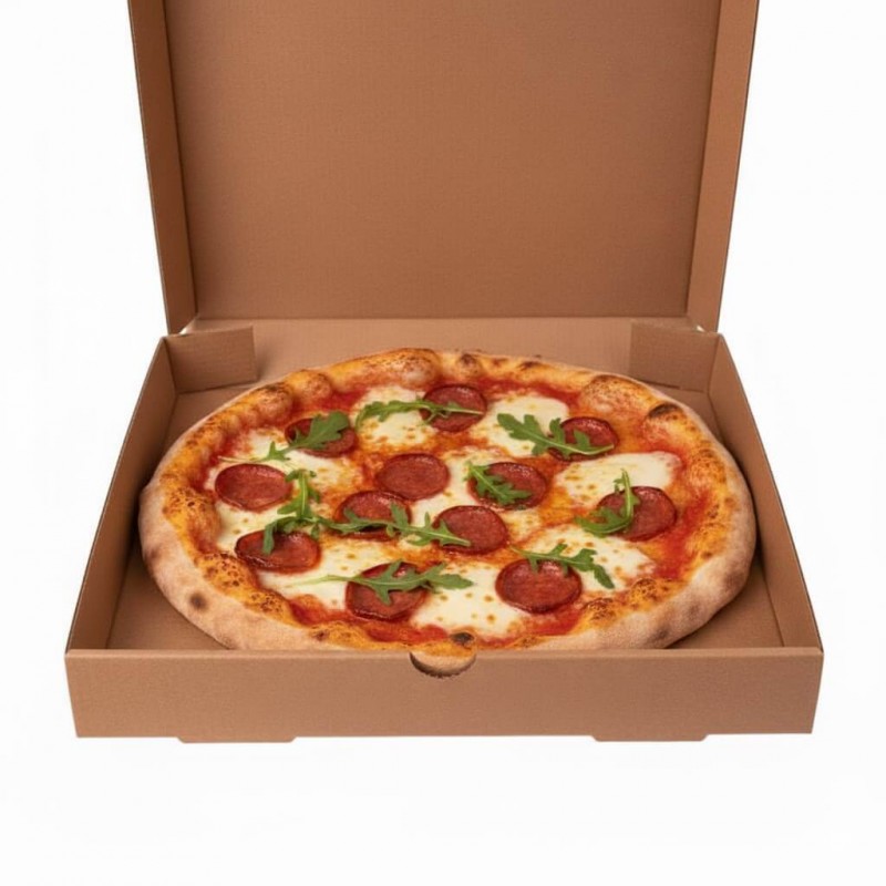 Caixa de pizza biodegradável para cuidar da sua apresentação e valorizar o seu sabor.