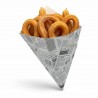 Maximize o conforto e a apresentação dos seus churros com estas embalagens de cartão 130×130×230 mm, concebidas especialmente para churrerias, food trucks, cafés e serviços de comida para levar. Graças à sua estrutura robusta, mantêm os churros quentes e protegidos, facilitando o transporte sem perder textura nem aroma.