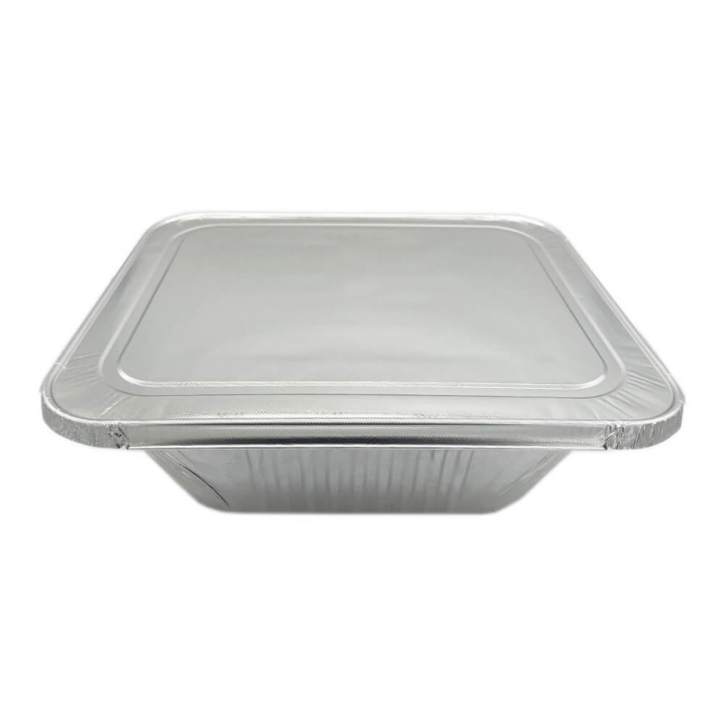 - Bandeja de alumínio de grande capacidade com tampa, ideal para produtos volumosos.