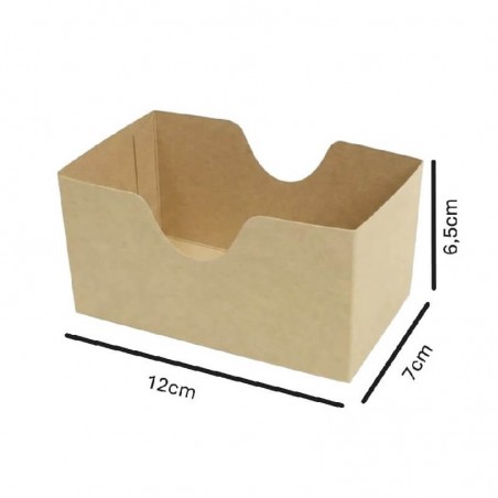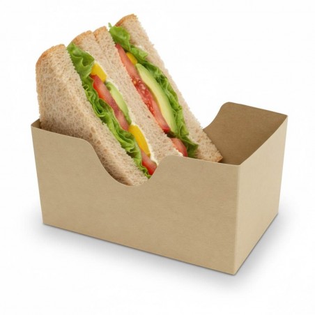 Graças ao seu tamanho compacto (12 cm de comprimento x 7 cm de altura x 6,5 cm de largura), é perfeita para sanduíches standard, proporcionando uma apresentação cuidada e profissional. Além disso, o cartão kraft transmite uma imagem ecológica e natural, muito valorizada pelos clientes.