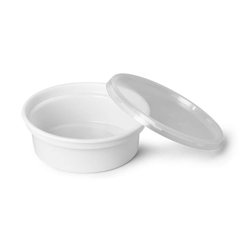 - Esta tarrina redonda, devido ao seu fechamento hermético, admite produtos que contenham molhos ou líquidos.