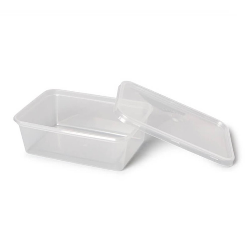 - Embalagem de plástico para micro-ondas fabricada em polipropileno homopolímero virgem injetável transparente com tampa de fechamento por pressão.