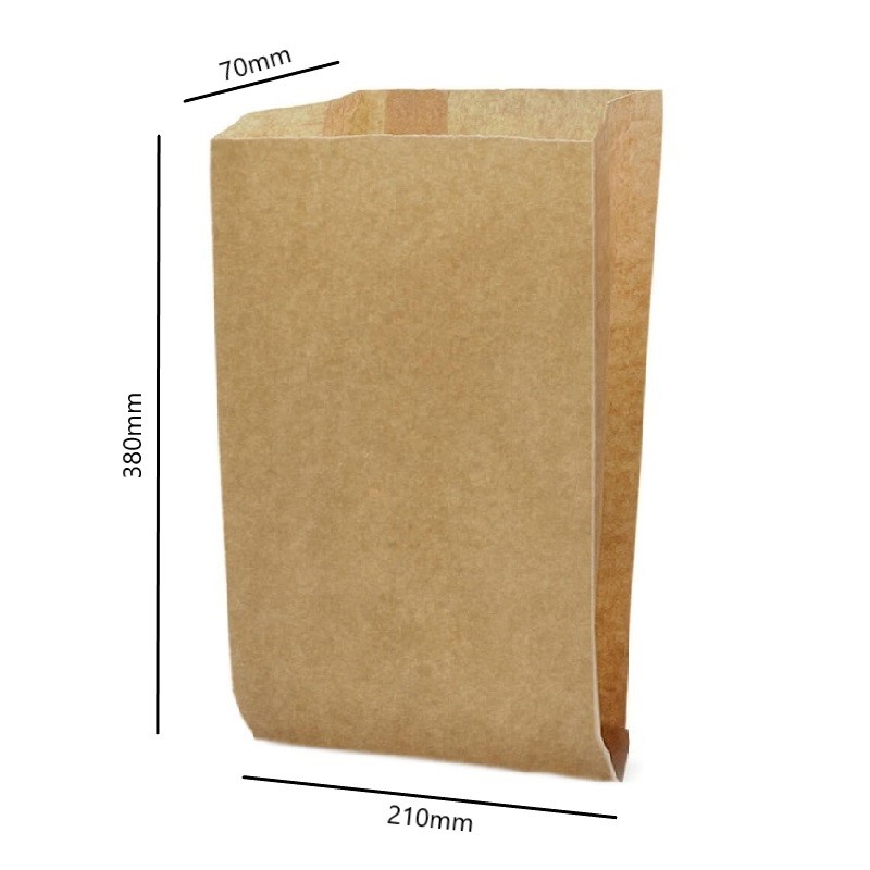 Saco de papel kraft biodegradável com revestimento anti-gordura para transportar alimentos.