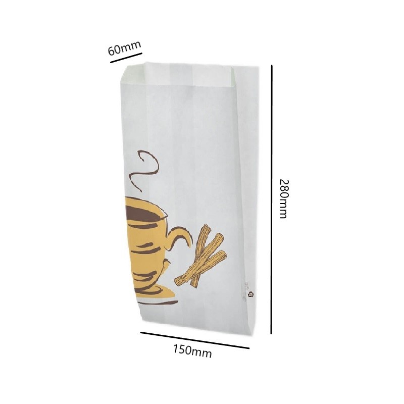 Sacos para churros de papel anti-gordura e biodegradável para evitar manchas de gordura.