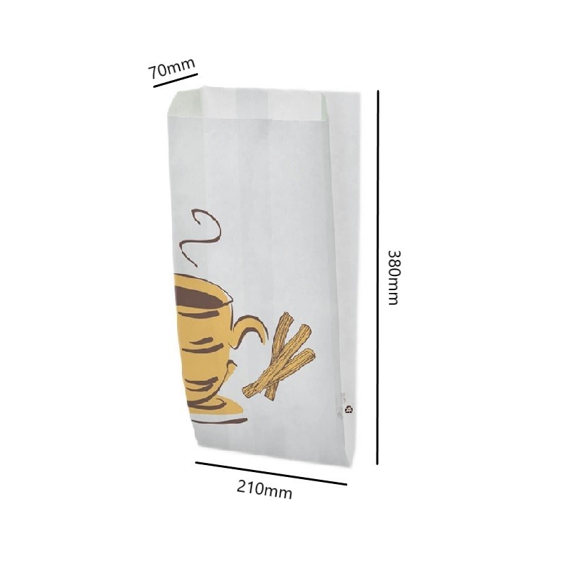 Sacos para churros de papel anti-gordura e biodegradável para evitar manchas de gordura.