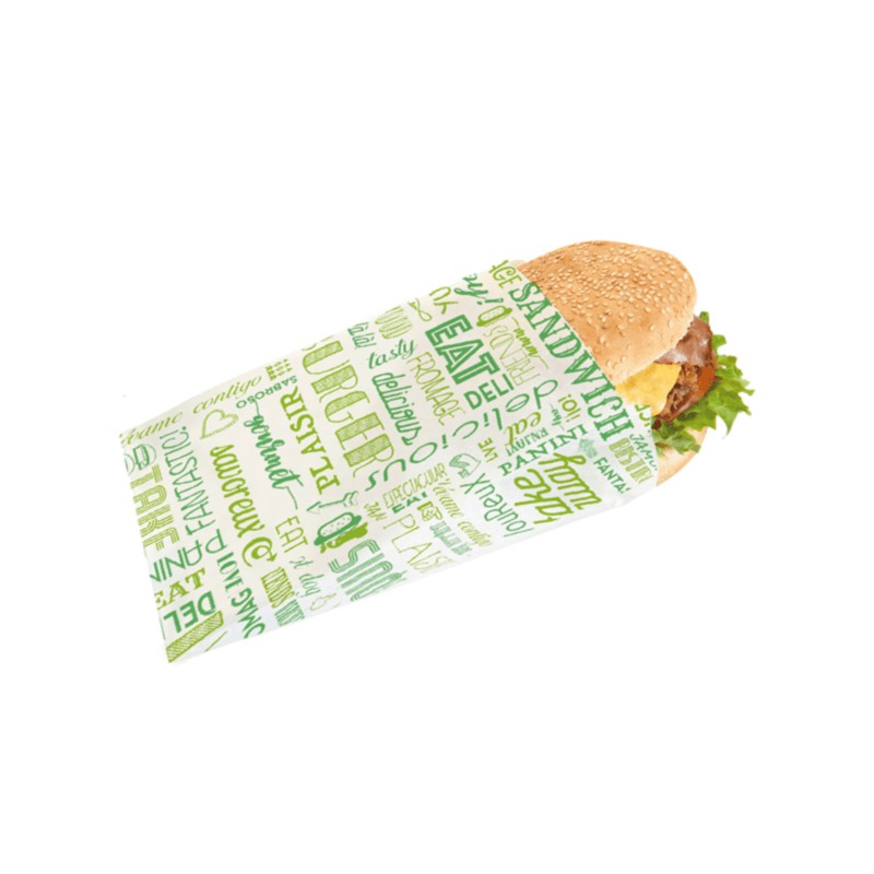 - Saco fabricado em papel anti-gordura adequado para produtos com molho, óleo, etc.